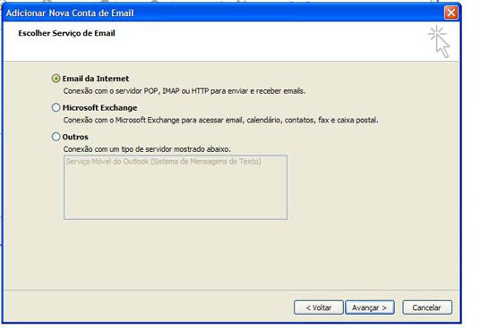 Selecione a opção Email da Internet e clique no botão Avançar.