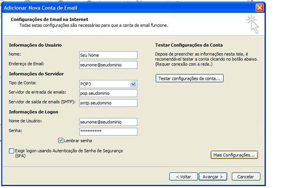 Suporte - Configurando seu e-mail no Microsoft Outlook 2007