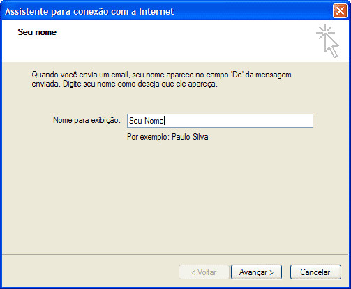 No campo "Nome para Exibição", digite o seu nome e clique em "Avançar";