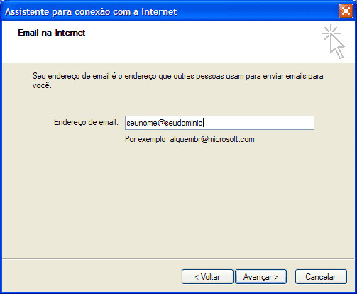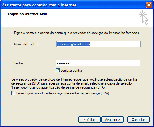 No campo "Servidor de mensagens enviadas (SMTP)" informe "smtp.seudominio" e clique em "Avançar";