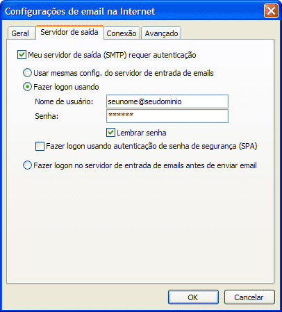No campo "Servidor de saída de emails (SMTP)" digite "smtp.seudominio";